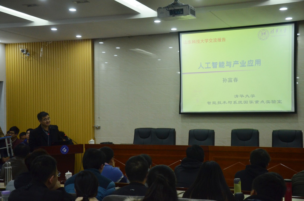 由研究生院(部)主办,十大正规买足球网站承办的2017年第二十三期“名家讲坛”于12月29日上午9:00在十大正规买足球网站泰山报告厅召开,主讲嘉宾是清华大学孙富春教授,题目为“人工智能与智能产业”。本次“名家讲坛”由十大正规买足球网站十大正规买足球网站副经理卢晓主持,公司部分教师和研究生参加了讲坛活动。