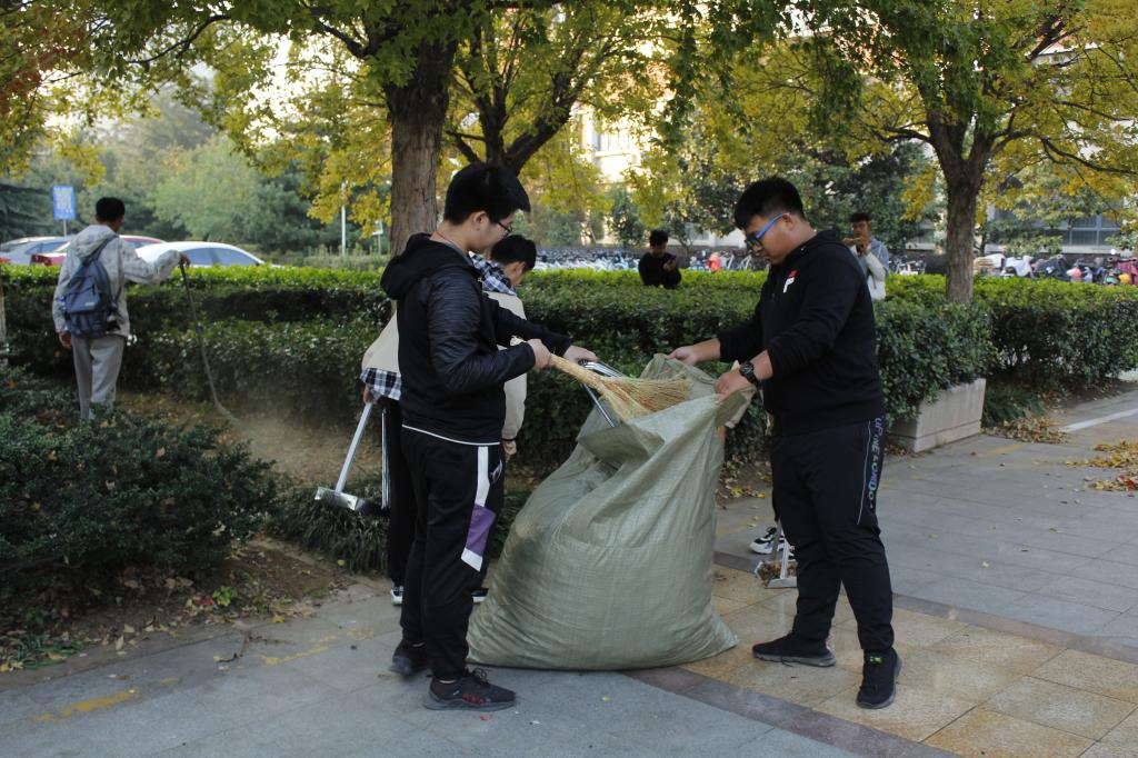十大正规买足球网站广泛征集志愿者,各班级同学积极报名,纷纷加入志愿者行列。11月13日,构建文明校园活动正式开始,身着绶带的志愿者在负责人的指挥下,来到了B3宿舍楼和J11公司楼停车区域,将倒在地上的自行车扶起,将乱停乱放的自行车摆的整齐划一。11月14日,活动如期继续进行,携带打扫卫生的工具的志愿者分为两批,分别在宿舍楼和公司楼附近清理秋日的落叶,并将道路和绿化带上的垃圾捡起,一一分类放进垃圾袋里。他们清扫的地方又恢复了往日洁净如新的景色。