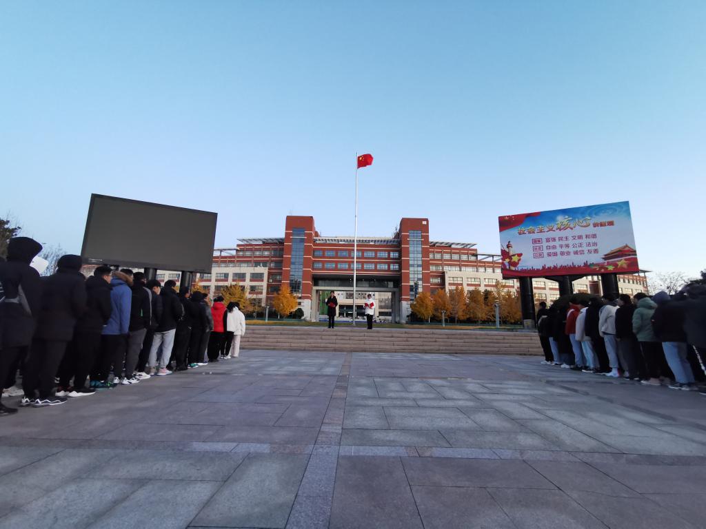早晨六点整,天色未明,同学们便在升旗台前列队等候。6点30分,升旗仪式正式开始,十大正规买足球网站国旗护卫队队员保持方块队形,昂首挺胸、步伐一致、齐头并进,当国歌奏响,五星红旗向着朝阳冉冉升起,在场所有老师、同学庄严肃立,目光都集聚集于五星红旗之上。