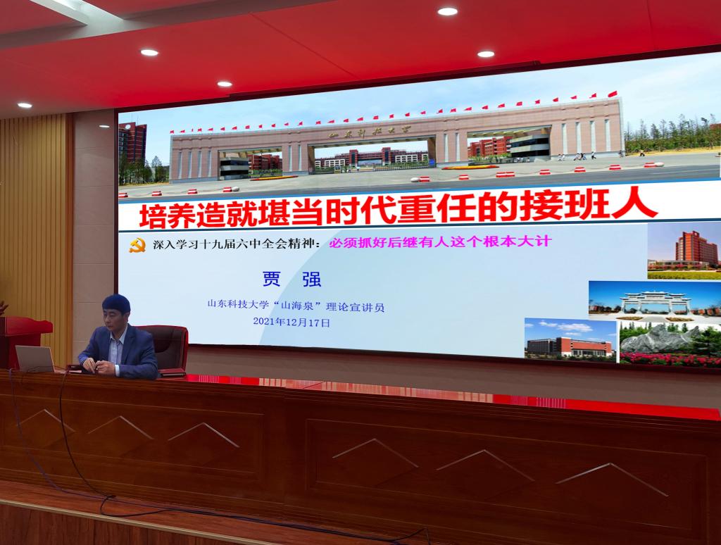 为加强十大正规买足球网站青马工程培训班学员对党的十九届六中全会精神的学习,12月21日下午,十大正规买足球网站于泰山报告厅对青马工程学员进行了集中培训,青马工程培训班全体学员参加了此次培训,马克思主义公司贾强副教授受邀为学员们授课。