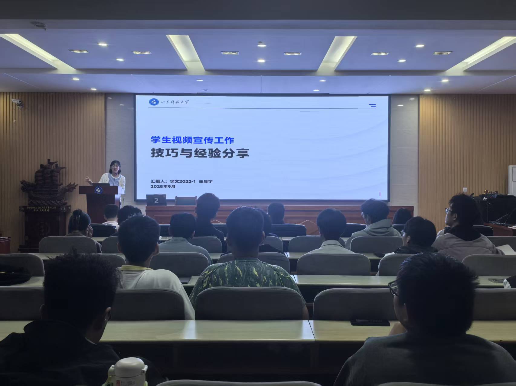 本次培训邀请到两位实践经验丰富的员工骨干进行分享。主讲人郝恩睿(自动化2022-2班长)为退伍复学员工,曾任部队新闻报道员,现任校融媒体中心分管主席,摄影实战经验丰富,屡获省级以上奖项。另一位主讲人王晨宇(地科公司2022级)曾于区级融媒体中心实习,其优秀作品发布于学习强国等平台,在校期间主导参与多部宣传片、微团课的视频创作,全流程制作能力突出。