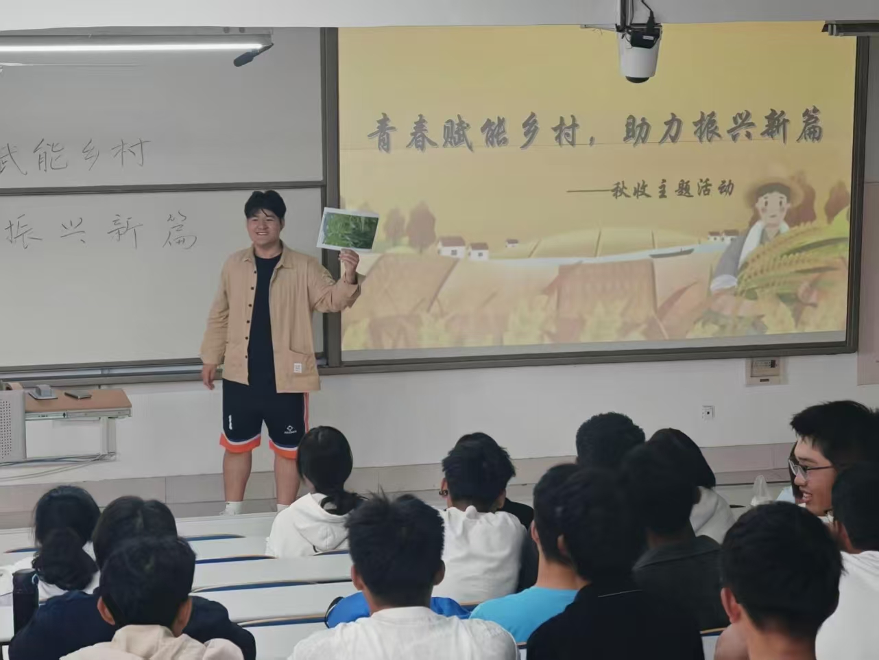 在心得分享阶段,多位同学踊跃发言,结合自身专业背景,畅谈如何将自动化、电气工程等专业技术应用于现代农业发展,如智能农机控制、农业物联网建设、粮食储存监测系统等,展现了工科学子扎根大地、服务乡村的担当与智慧。