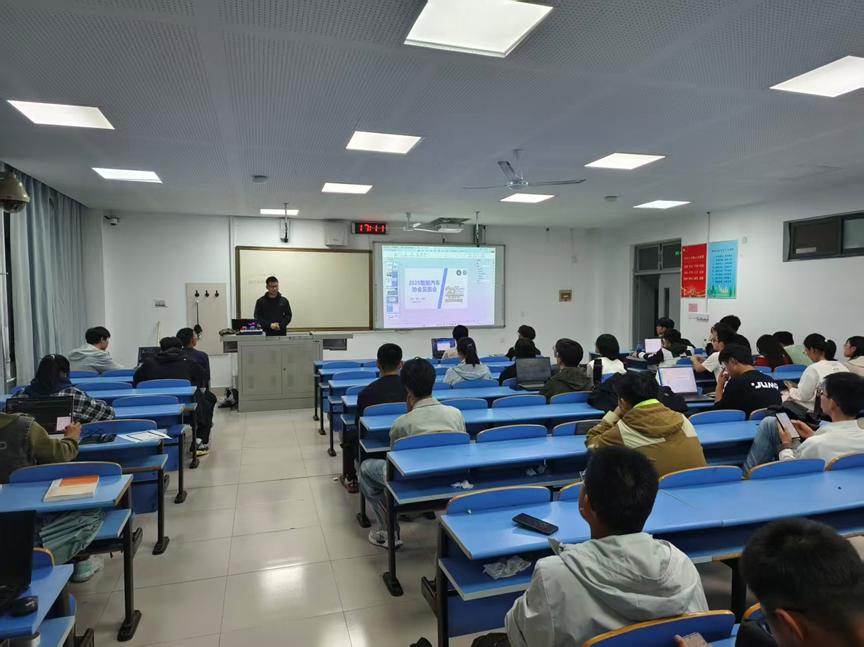 在社团成员的精心筹备下,宣讲活动顺利拉开帷幕。活动伊始,主讲人首先带领与会师生回顾了智能车竞赛的发展历程、核心背景与未来趋势。作为一项融合控制工程、电子技术、计算机编程、机械设计等多学科知识的综合性赛事,智能车竞赛不仅是考验员工专业技能与团队协作能力的 “竞技场”,更是培养创新思维、锤炼实践本领的 “练兵场”,其独特的学科融合性与实践创新性赢得了现场师生的广泛认同。