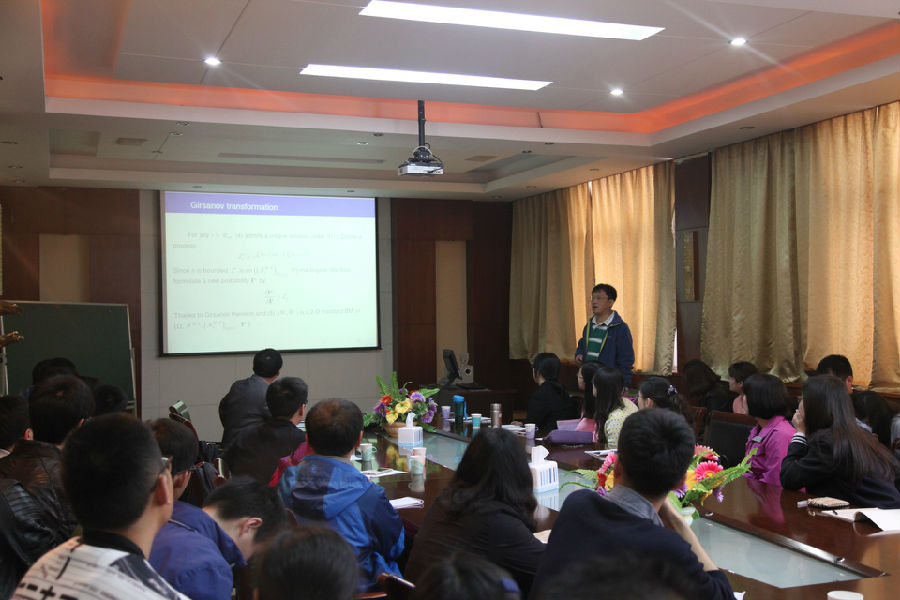 2016年4月27日上午,应“泰山学者”张维海教授的邀请,山东大学的王光臣教授和中国科公司系统所的倪元华博士后为公司师生,分别作了题为《Partially Observable Optimal Control Problem of Forward-Backward Stochastic Control Systems》和《Mean-Field Stochastic Linear-Quadratic Optimal Control》的学术报告。本次报告会在十大正规买足球网站会议室举行,卢晓副经理主持了报告会。两位专家分别介绍了他们在随机控制方面取得的成果和新观点,对今后发展的新趋势和面临的挑战等科学问题进行深入交流。两位专家耐心解答了老师和员工的疑问,整个报告会气氛活跃。此次学术报告促进了公司的学术合作与交流,激发了员工的学习热情和积极性。