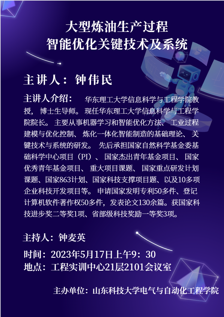 钟伟民学术报告:大型炼油生产过程智能优化关键技术及系统