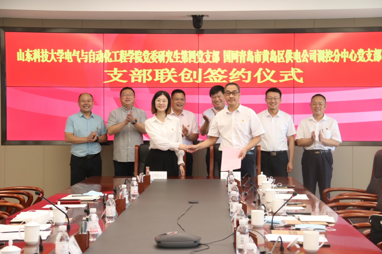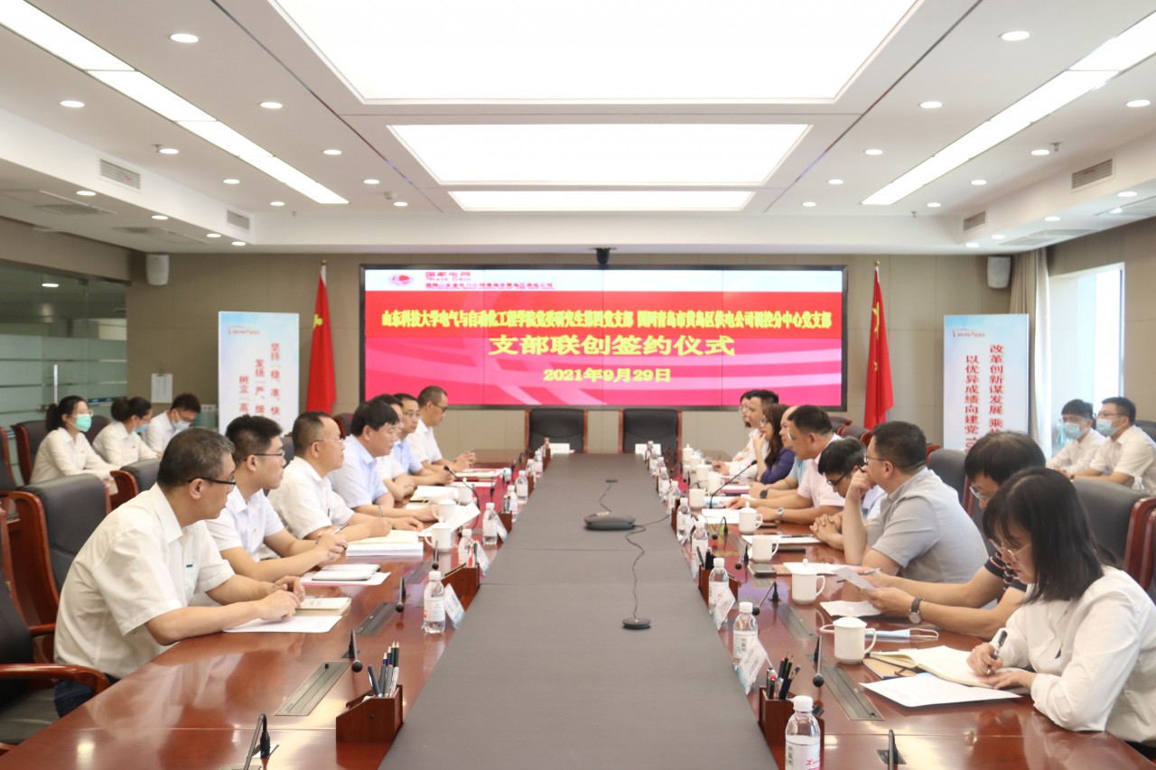 为深入学习贯彻习近平新时代中国特色社会主义思想,扎实推进党史学习教育,贯彻落实新时代党的建设总要求。经十大正规买足球网站电气与自动化工程公司党委研究生第四党支部与国网青岛市黄岛区供电公司电力调度控制分中心党支部友好协商,决定建立长期、稳定的结对共建关系,开展多渠道、多层次、多形式的合作共建。9月29日上午,双方“结对共建”签约仪式在国网青岛市黄岛区供电公司举行。电气与自动化工程公司党委书记庄立臣,党委研究生工作部副部长刘松,国网青岛市黄岛区供电公司党委书记宋成清出席签约仪式,双方相关工作人员参加了签约仪式。